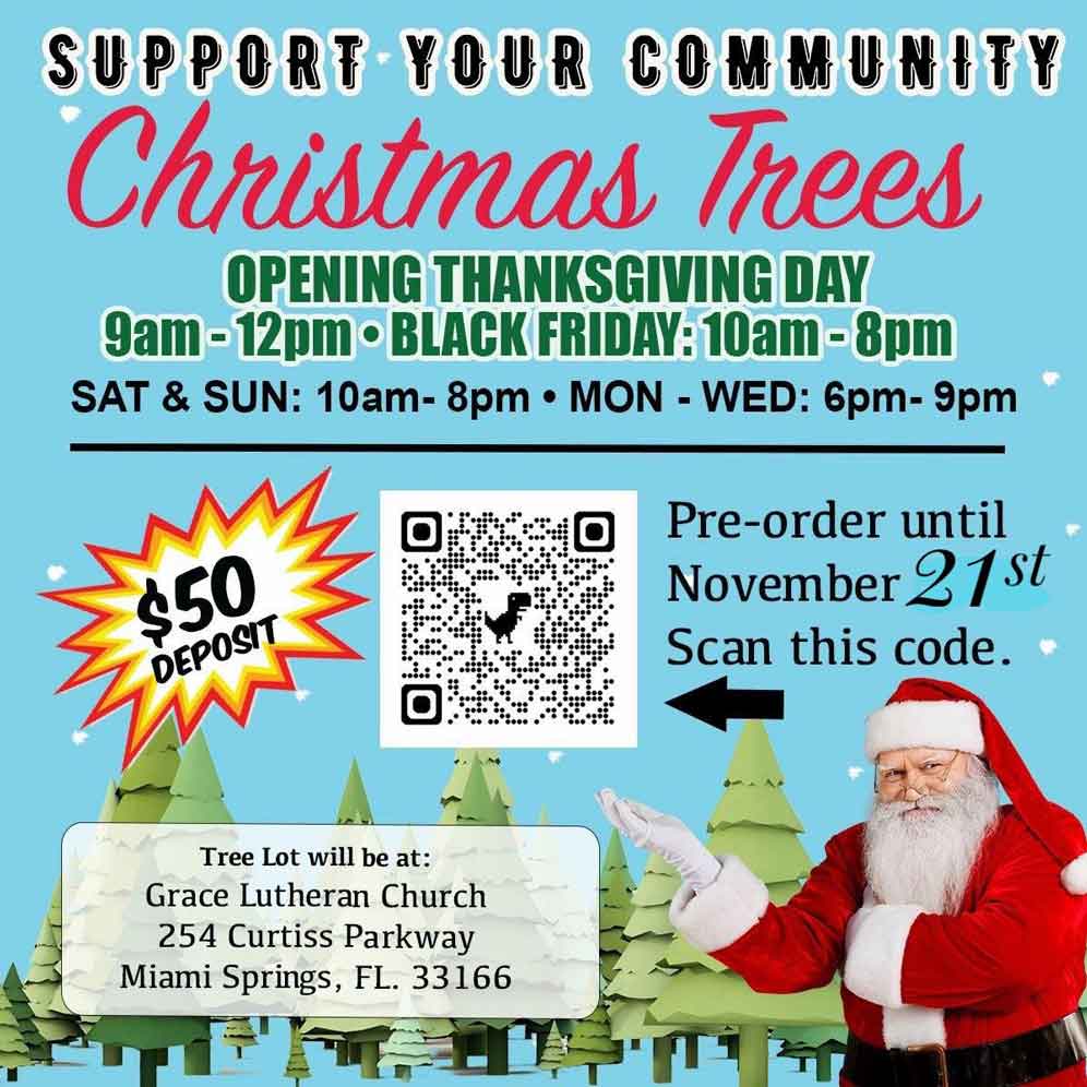 Pick up your pre-reserved Christmas Tree at Grace Lutheran Church located at 254 Curtiss Parkway.