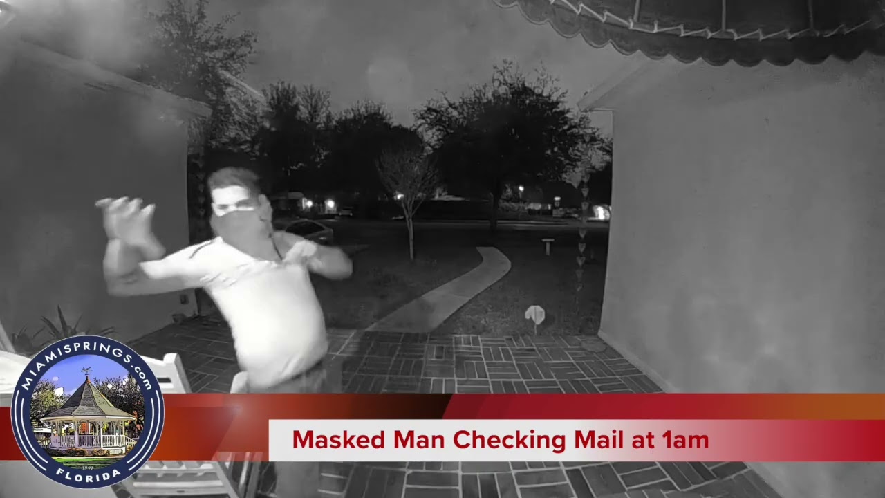 A local Miami Springs resident shared this video of a creepy masked man in Miami Springs checking for mail at 1 A.M. in the morning.