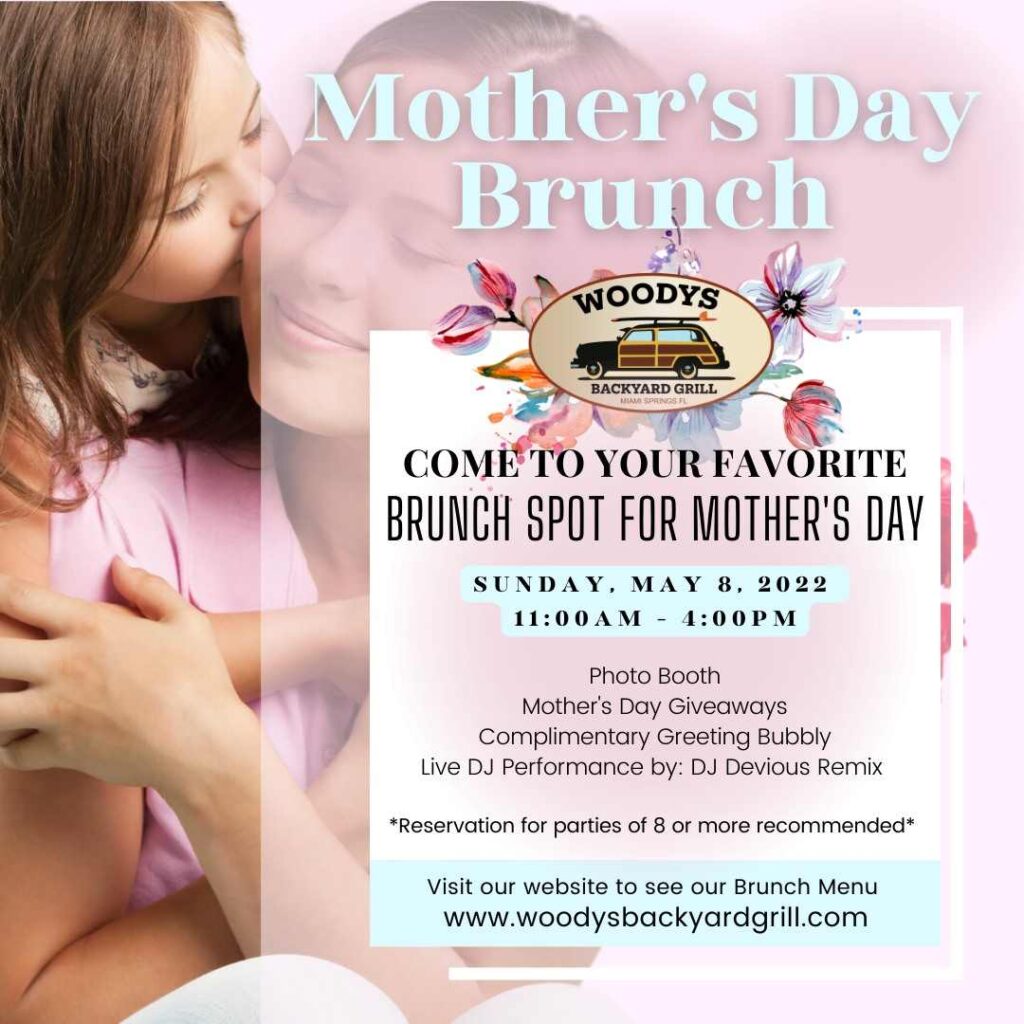 Celebrate Mother's Day with Brunch at Woody's Backyard Grill located in Miami Springs! Live on Mother's Day performance by DJ Devious Remix. Let's not forget our most popular drink specials: … Continue reading Mother’s Day with Brunch at Woody’s