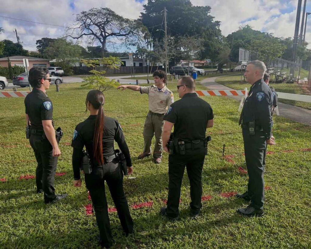 Earlier this week, members of the Miami Springs Boy Scouts Troop 334 along with dignitaries from the City of Miami Springs broke ground at Stafford Park to create the Officer Charles B. Stafford Memorial.