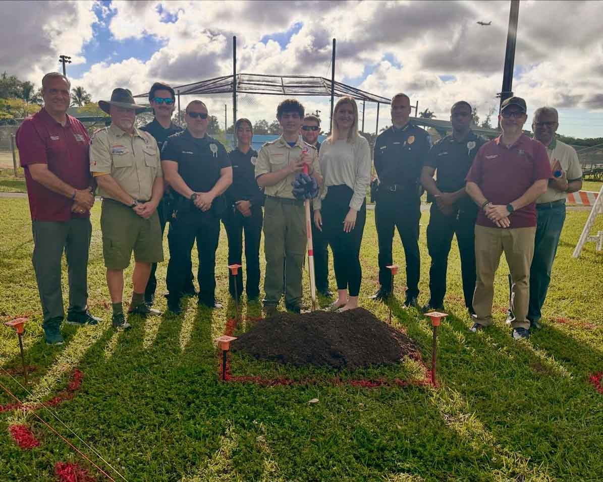 Earlier this week, members of the Miami Springs Boy Scouts Troop 334 along with dignitaries from the City of Miami Springs broke ground at Stafford Park to create the Officer Charles B. Stafford Memorial.