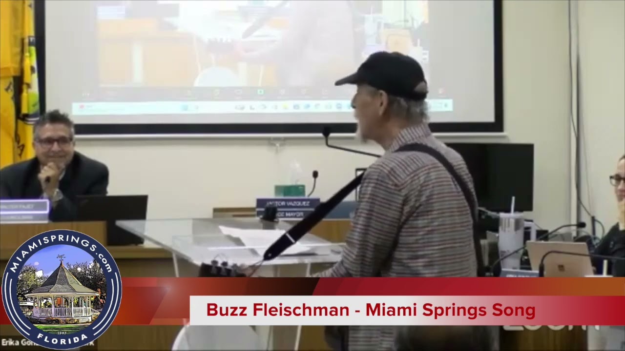 Listen to Buzz Fleischman’s performance of “In Miami Springs” at last week’s Miami Springs Council Meeting. Â