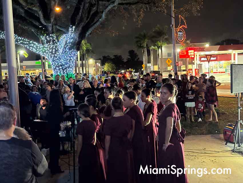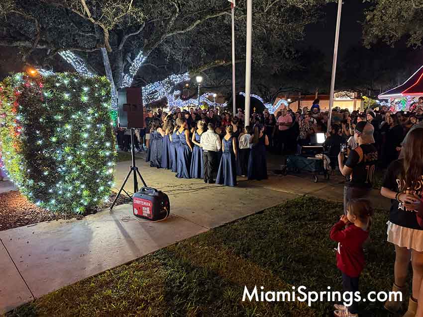 The City of Miami Springs held its annual tree lighting ceremony Sunday night and it drew hundreds of residents for pictures with Santa and live Christmas performances.