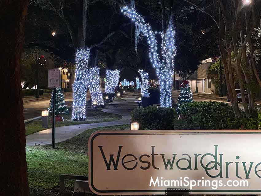 Miami Springs really shines during the holidays. Thanks to contributions by local civic groups like the Rotary Club and additions from the city itself, Miami Springs has expanded the Christmas displays to include lights along the entire Westward business district, Christmas Trees around the Circle, and new Christmas Trees along Curtiss Parkway.