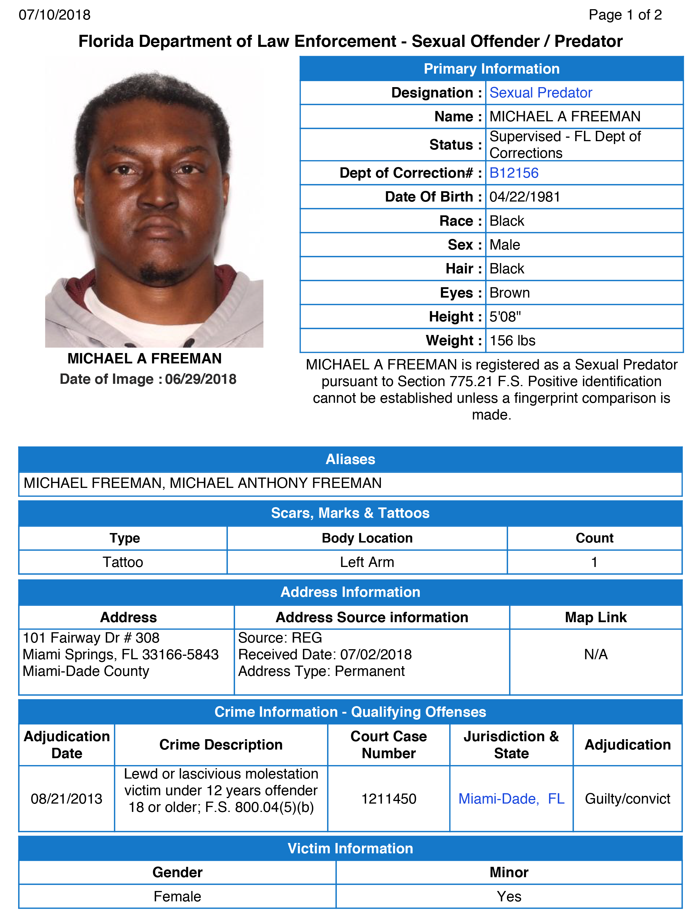 MICHAEL A FREEMAN – Florida Sexual Predator-1