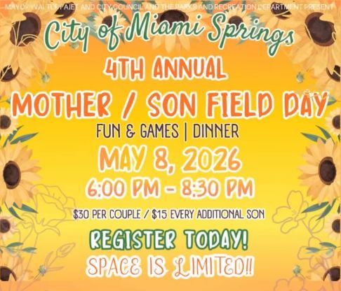 Mother Son Field Day takes place on May 8, 2026 from 6:00 PM to 8:30 PM at the Miami Springs Recreation Center, featuring an evening of fun, games, dinner, and […]