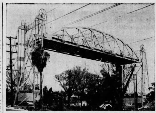 Rare photo of the Parker vertical lift bridge connecting Hialeah and Miami Springs in the up position. The bridge was moved up the Miami Canal by barge from it’s original location at NW 36th St. in 1954.