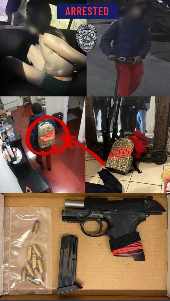 Miami-Dade Sheriff’s Office South District Gangs Unit assisted in the apprehension of the suspect alongside the Miami Springs Police Department’s Investigations Unit.