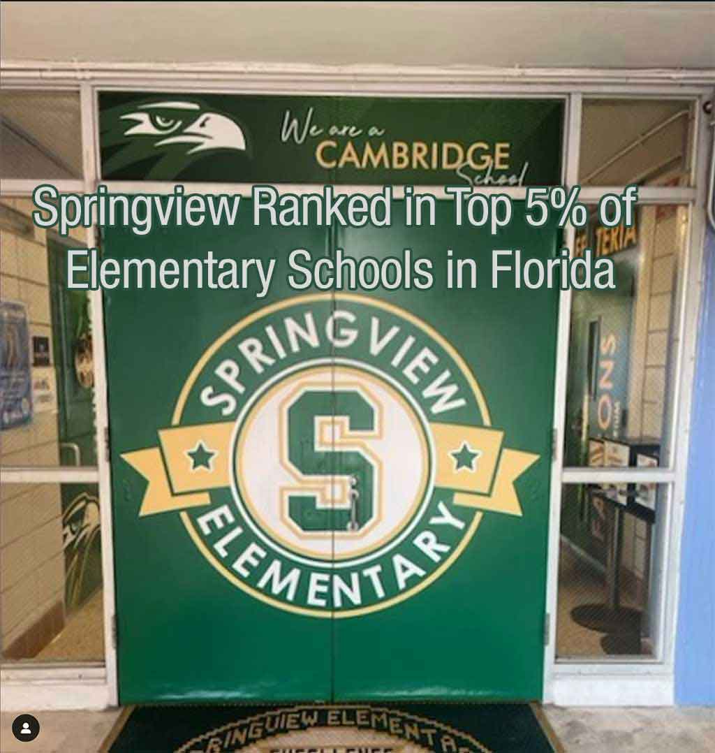 We want to congratulate the Springview Elementary team including the administrators, teachers, parents, and students for making Springview Elementary one of the best elementary schools in the entire State of Florida.