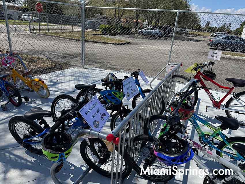 The Springview Elementary students meet at the Miami Springs Rec Center parking lot every Friday morning on their bikes…oftentimes accompanied by a parent also riding a bike. Then, once all the students have arrived at the Rec Center, they depart and ride towards Hammond Drive until they reach Springview Elementary.