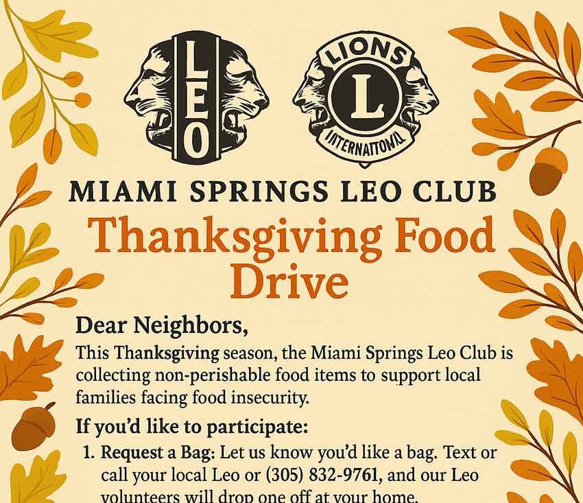 The Miami Springs LEO Club is having a Thanksgiving Food Drive in partnership with the Miami Springs Lions Club.