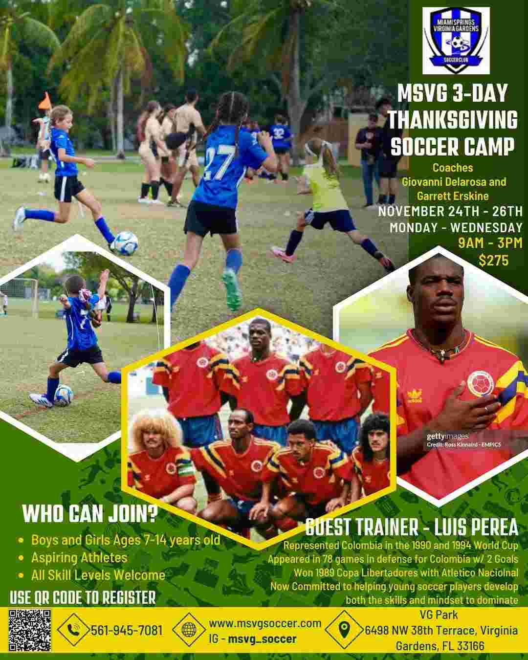 We are excited to announce our annual MSVG Thanksgiving Soccer Camp with Special Guest Trainer Luis Carlos Perea joining us for all 3 days!