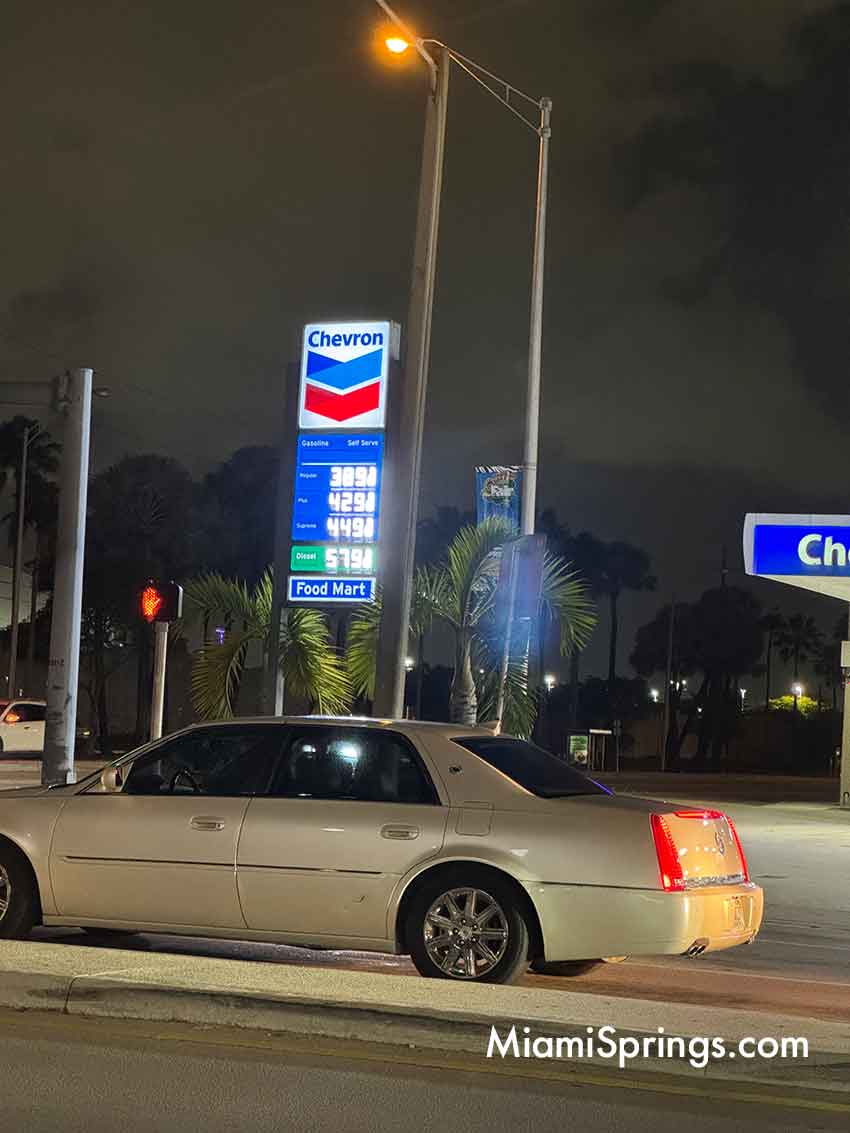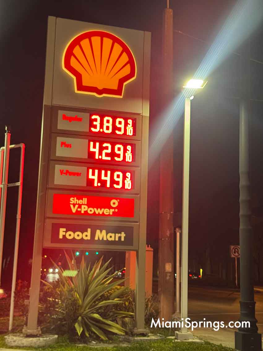 So we decided to drive around Miami Springs to find the lowest priced gas in Miami Springs. (Note: The prices listed here were taken Wednesday, April 1st after 9pm. Prices are fluid and subject to change without notice.) Here’s what we found: